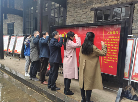 同志们一起参观了通讯处展览馆和薪火抗战历史文物博览馆。站在一张张发黄的黑白照片前面,大家深刻感受到在那个硝烟滚滚的年代,无数的革命先烈为了中华民族的独立,奋不顾身地奉献出自己的生命,将青春和热血撒抛向深深热爱的国土。参观结束后,党员同志一起冒着大雨聚集到八路军驻湘通讯处旧址门前,面向鲜红的党旗,右手举拳,举行庄严的入党宣誓仪式教育,重温入党誓词。