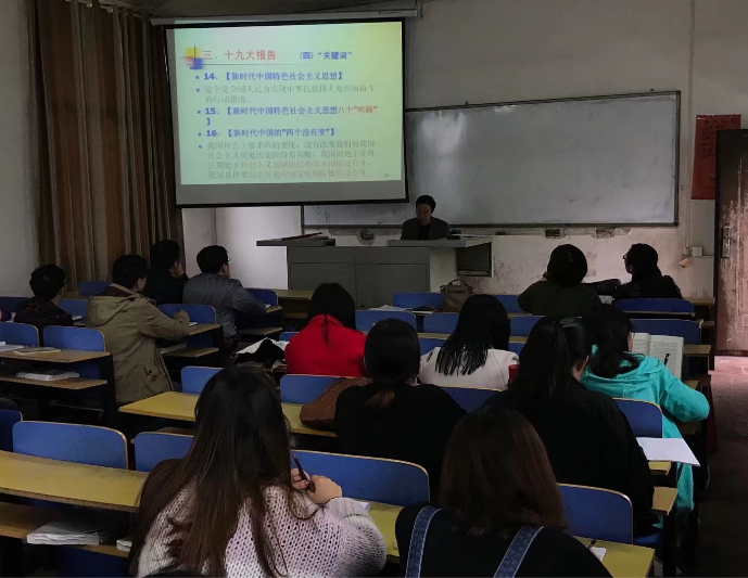 为确保党的十九大精神在基层落地落实,国际学院党总支于11月10日14:00在老三栋401开展主题党日活动。本次活动由国际学院党总支书记刘期忠主持,分为两个部分,全体教职工党员和学生党员积极参与学习。