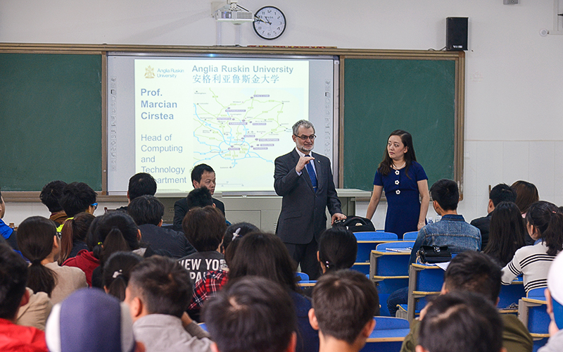 访问期间,Marcian教授向国际学院的学生们介绍了安格利亚鲁斯金大学计算机科技学院的概况和最新学术成就、电子信息工程专业的核心课程设置和组织结构、专业项目实例等内容。在互动环节中,Marcian教授还为提问学生赠送了小礼品,整个讲座气氛十分轻松活跃。