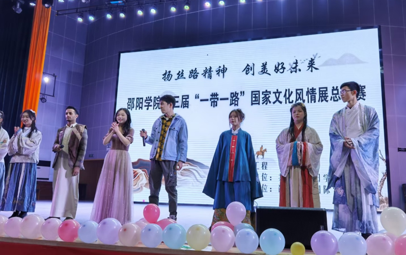 为积极响应国家“一带一路”战略,12月20日晚,由共青团邵阳学院委员会主办、邵阳学院国际学院承办的第三届“一带一路”国家文化风情展总决赛在七里坪校区逸夫图书信息楼报告厅隆重举行。