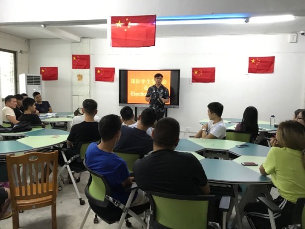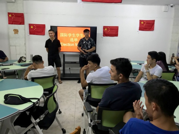 10月3日下午,全体国际学生参加国际学生学生会选举大会。会上,来自老挝的苏礼、龙大云,来自乌兹别克斯坦的江波、马克,来自吉尔吉斯斯坦的王力、诗雨、艾达纳等学生参加竞选。通过微信投票的方式,最终苏礼当选国际学生学生会主席,诗雨当选学习部部长,江波和艾达纳分别当选为体育、组织部部长