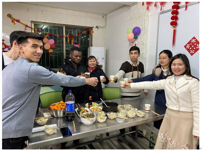 2月3日下午,邵阳学院在校国际学生开展中国饮食文化体验活动,喜迎中国的传统节日——春节。参加此次活动的还有国际学院院长李新社教授,国际学生干事旷笔升,国际学生辅导员罗荣以及君子兰楼宿管阿姨朱小燕。