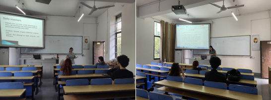 9月23日至9月27日的下午,国际学生干事旷笔升、辅导员罗荣分别开展了国际学生日常管理制度教育,包括奖学金评定办法教育、日常行为管理规定教育、中国法律法规、交通安全、消防安全、保险购买声明、学生日常事务办公指南以及宿舍管理规定教育等。两位老师还对国际学生存在的疑惑问题进行了详细地解答,旨在帮助同学们更好地了解学校的各项规章制度。