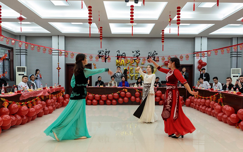 随后,各国的同学们带来了充满异域风情的节目。乌兹别克斯坦学生带来了欢快的《安集延圆舞曲》,老挝学生自弹自唱,幽默地吐槽学习中文时遇到的趣事儿。晚会中既有老挝、乌兹比克斯坦、吉尔吉斯斯坦等国的民族风情舞蹈,也有同学们演唱耳熟能详的中文歌曲,还穿插着趣味的中国文化小游戏,氛围热烈而欢乐。师生其乐融融,欢聚一堂,共同庆祝新年的到来。