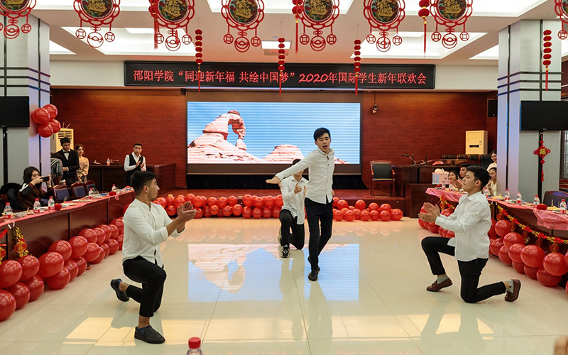 12月31日,邵阳学院“同迎新年福 共绘中国梦”2020年国际学生新年联欢会在七里坪校区一办公楼报告厅举行。国际学生载歌载舞,积极展现精心准备的各具民族特色的才艺表演。校党委委员赵敏丽及国际交流处、国际学院负责人、教师代表与全体国际学生共度美好时刻,迎接新年的到来。