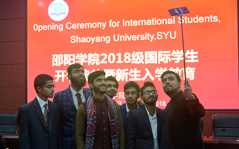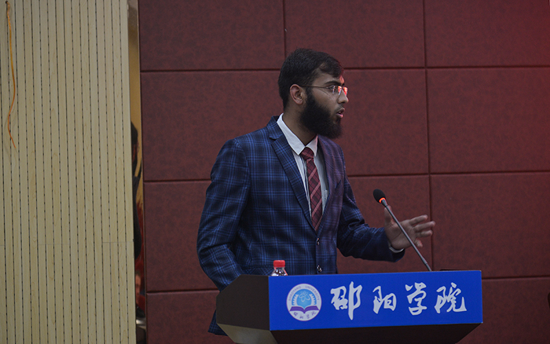 随后,国际学院院长李新社介绍了国际学院的基本情况、学院师资和对外汉语教学队伍情况。赵素轶老师作为教师代表,以生动的语言阐述了自己对汉语教学的热爱,以及对学生们勤勉好学、勇于开拓的要求。留学生代表、来自巴基斯坦的新生Hazma Muhammad Afzal则畅谈了自己来邵阳学院求学的赤诚初心。