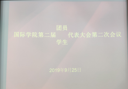 会议由17级的顾文涓同学担任主持。在主持人宣读本次大会的筹备情况及完成预备会议审议表决的各项议程后,会议在庄严的国歌声中开始, 老师致开幕词,并预祝本次大会胜利召开。 随后由团总支委员旷争威、18届学生会主席陈小茹分别做了2018—2019年团学工作报告, 并经大会审议与表决通过,在主持人宣读并通过本次大会选举办法、监票人和选举干部候选人员简介后,以无记名投票的方式选举产生了国际学院新一届团总支、 学生会干部班子。