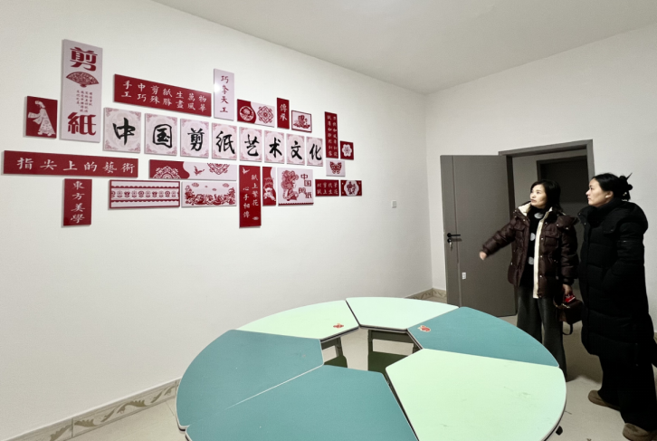 随后,院领导参观了宿舍区内专门设立的“国际学生自习室”和“文化展室”。自习室环境安静、设施齐全,为国际学生提供了便捷良好的学习空间;文化展室则通过实物、图片等生动展示了京剧、剪纸等中国传统文化。