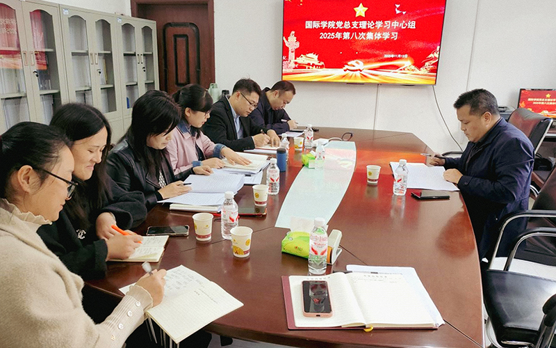 1113日上午,国际学院党总支在七里坪校区一办公楼212会议室开展理论学习中心组2025年第八次集体学习,专题深入学习领会习近平文化思想以及习近平总书记关于意识形态工作和文化遗产保护传承的最新重要论述。校党委委员、副校长唐杰全程巡听指导,学院党总支理论学习中心组全体成员参与学习研讨。会议由党总支书记刘红新主持。