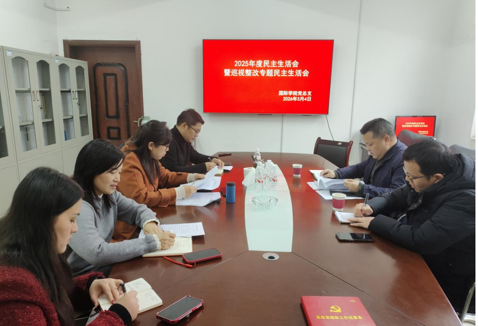 根据学校党委统一部署,国际学院于3月4日在校一办公楼212会议室召开“2025年度党员领导干部民主生活会暨巡视整改专题民主生活会”。校党委委员、副校长唐杰到会指导,学院领导班子成员刘红新、刘丽华、唐永辉参加会议,副院长肖婷列席会议。