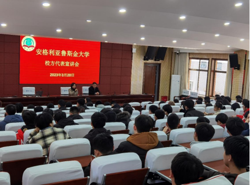 3月20日,国际学院组织了英语安格鲁斯金大学校方代表宣讲会。安格利亚鲁斯金大学校方代表、国际学院党政班子、各年级辅导员以及通信工程2020、2021级学生出席本次宣讲会。会议由国际学院院长刘丽华主持。