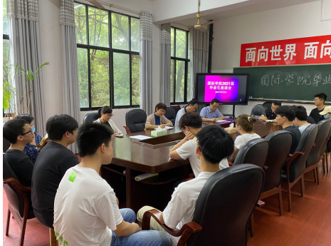 又到毕业季,2021届毕业生即将离开校园,为了让他们感受学院的温暖,听取他们大学四年来的心声,征求他们对学校和学院发展、学弟学妹的成长成才建议和意见,国际学院6月2日召开了2021届毕业生座谈会,会议由国际学院党总支副书记李佑丰主持,党总支书记刘期忠、院长李新社、副院长刘红新、就业专干、年级辅导员、毕业班班主任,以及毕业生代表参会。