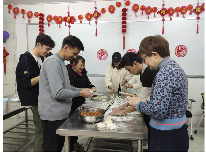 2月3日下午,邵阳学院在校国际学生开展中国饮食文化体验活动,喜迎中国的传统节日——春节。参加此次活动的还有国际学院院长李新社教授,国际学生干事旷笔升,国际学生辅导员罗荣以及君子兰楼宿管阿姨朱小燕。
