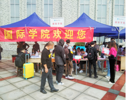 夜色逐渐降临,来报道的新生逐渐减少,但是志愿者们都仍然精神饱满地等待着,他们目不转睛地盯着每一个经过的新生,希望能够捕捉到国际学院新生们看到自己学院指示牌时那了然与惊喜的目光。