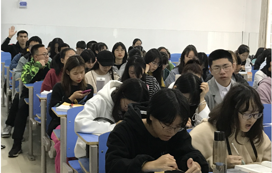 我校自2019以来,实现国际学生培养层次新突破,目前已有2019级和2020级两个年级的学历生。为加强国际学生学风建设,本学期以来,国际学院国际学生管理人员多次加入国际学生所在课堂听课了解情况,其中包括2019级旅游管理专业4个课堂,2019级和2020级国际经济与贸易专业各1个课堂,2019机械设计制造及其自动化专业1个课堂。听课结束后详细了解了学生专业课的学习情况和对教师课堂教学的适应情况,并与相关任课教师及时沟通,反馈学生学习当中存在的困难和问题,虚心请教任课老师关于国际学生学习专业课的建议。国际学院通过加强对国际学生学习情况的跟踪,及时引导学生调节学业压力,帮助学生加快文化适应,更好地融入专业学习和校园生活。