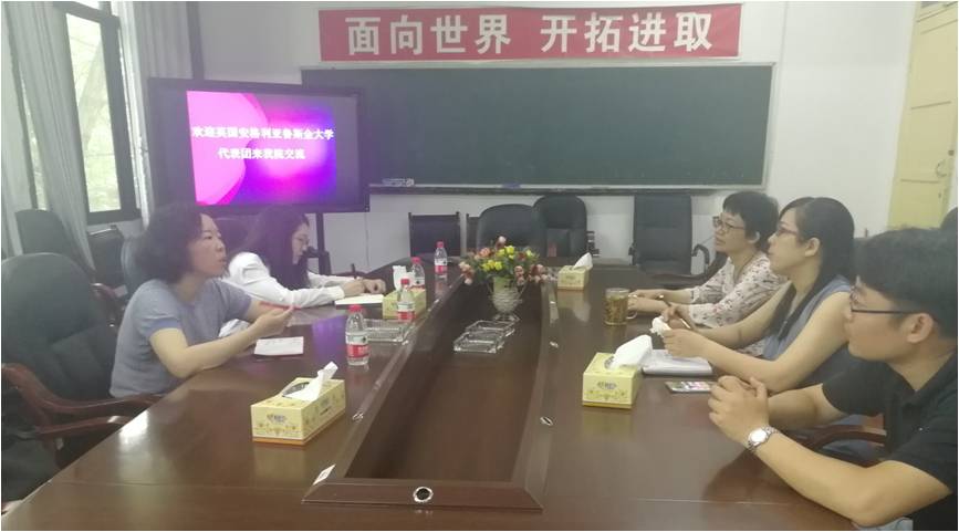 2019年6月19日,英国安格利亚鲁斯金大学代表团Jin Jing和Feng Helen来我院就评估、人才培养方案、学生出国留学等工作进行交流,院长李新社、副院长刘红新、国际交流处唐永辉出席了会议。