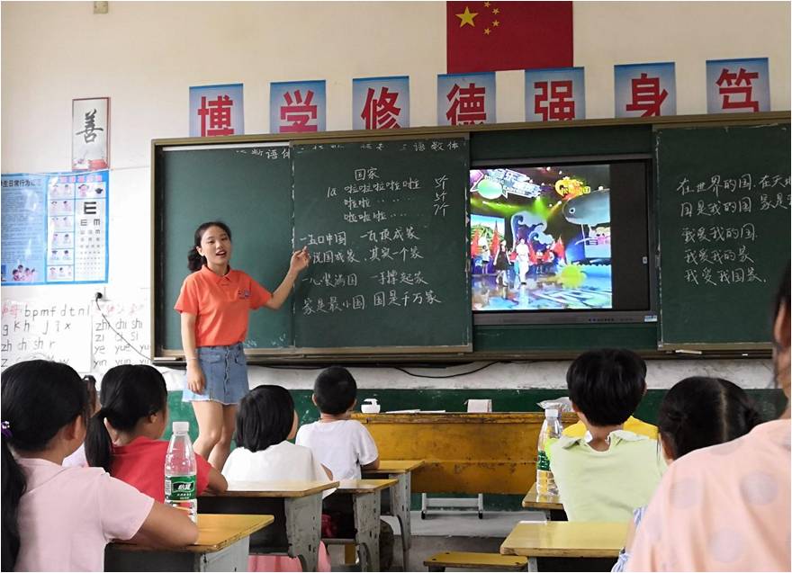 (通讯员 胡慧 谢婷婷)为加强贫困地区的爱国主义教育,提升留守儿童的民族自豪感。7月5日,邵阳学院“筑梦起航”关爱农村留守儿童服务团在邵东县周官桥乡黄渡学校开展了第二天的教学工作,围绕“情系家国”爱国主义教育主题,进行了歌曲《国家》的教学。