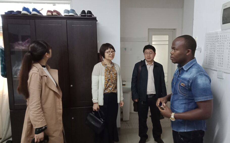(图为我校调研小组参观湘潭大学国际学生公寓)