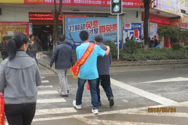 从当天值班的协警阿姨的口中,通讯员了解到交通劝导队的成立对协警阿姨的工作是十分有帮助的。目前中国交通不文明现象很普遍,导致事故发生率很高。国家从考驾照的角度对司机们进行严格把关,对于违反交通法则的现象进行严肃处理。但行人的交通文明意识薄弱始终是一个老大难的问题。文明劝导队的志愿者们关注到此问题,并积极采取行动意欲以从身边做起的方式,为这一问题的改善尽自己的一份力量。