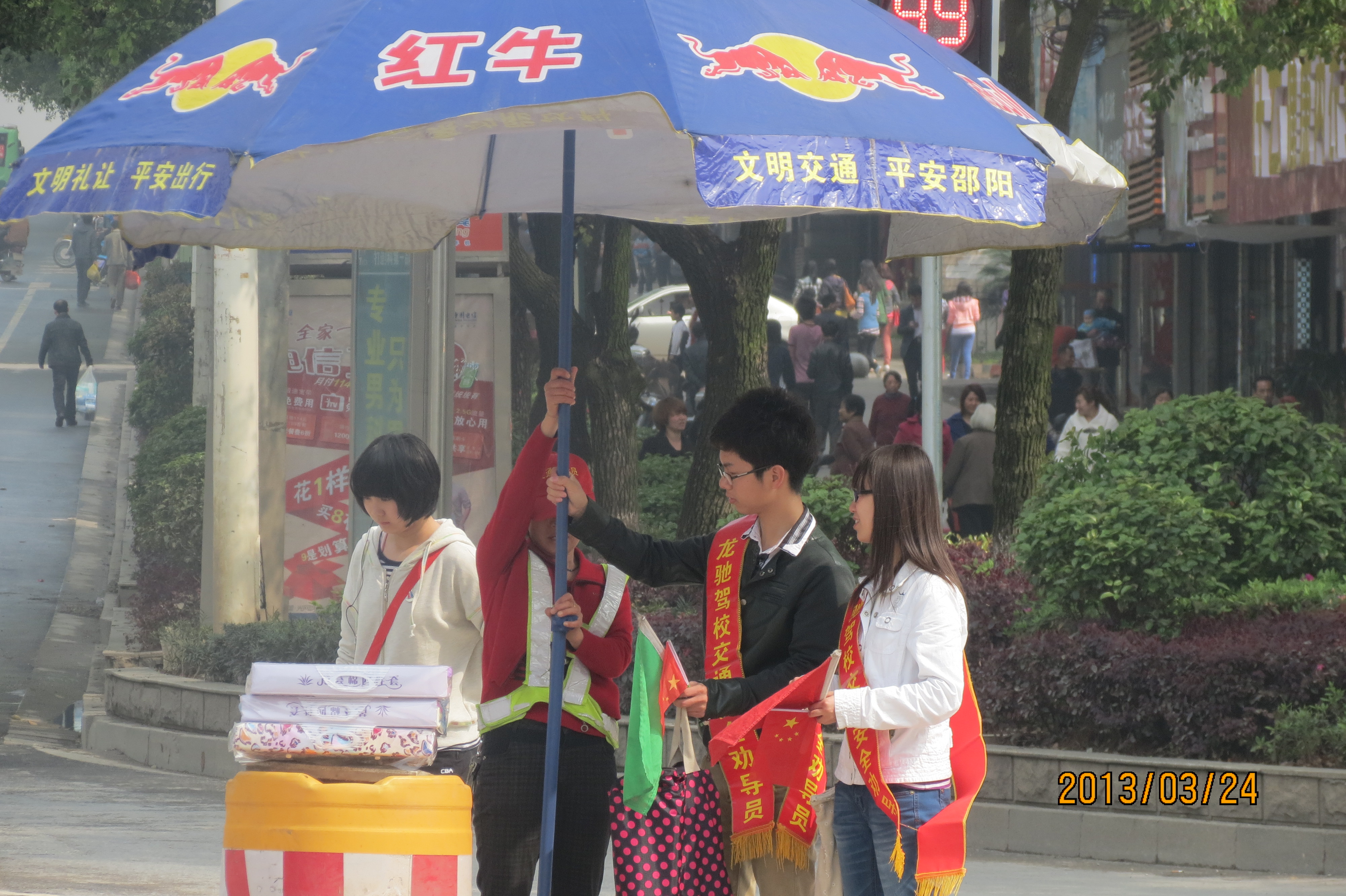 2013年4月21日星期日上午,邵阳学院魏源国际学院社会实践部组建的“交通文明劝导志愿者小分队”如往常一样地来到邵阳市汽车南站十字路口进行交通劝导工作。其志愿者均为魏源国际学院的学生,本次活动的目的是为了响应邵阳市政府的号召积极参与城市市容市貌建设,积极担负起大学生的社会责任。交通劝导队主要以对试图肆意横穿马路的行人进行劝阻,以及耐心为行人分析横穿马路存在的弊端的方式开展工作。
