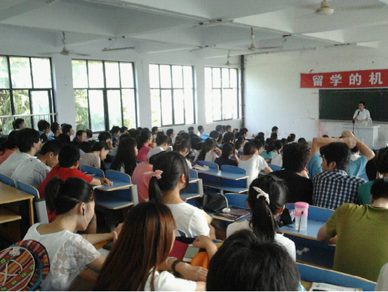 下午四点三十分,讲座在赵院长简要的介绍下拉开了序幕。随后,廖登博士根据自己留学海外的经验,总结出以下两点:首先,是否就读一流院校并非特别重要,各专业能学到的知识大同小异,只是积攒的人脉不同;其次,鉴于如今海归甚多,他建议大家在学业有成后,暂且在国外工作一至三年,因为在国外可以开拓视野,增强对多元文化的理解,让自己赢在起点上。廖登博士还告诫同学们,在国外切记不可自卑,要勇敢表达自己的想法,尽量创造用英语交流的机会。最后,他强调“长远的目标决定成就的高度,未来是属于大家的”,并希望同学们好好努力,为梦想奋斗。