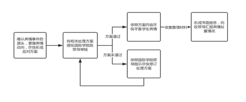 疫情直接相关类突发事件是指事件与疫情防控工作直接相关,可能导致疫情防控工作失控、疫情产生或扩大的各类疫情相关的突发事件。出现该类突发事件时须高度重视,第一时间向国际学院工作领导小组汇报,具体处理流程可参照以下预案执行。